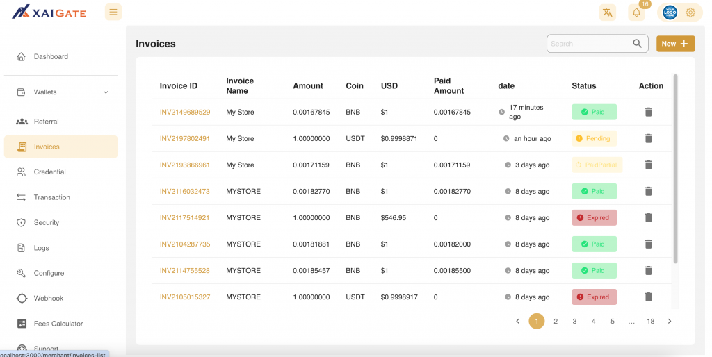 - You can also view all orders in your XAIGATE PrestaShop cryptocurrency payment gateway dashboard: